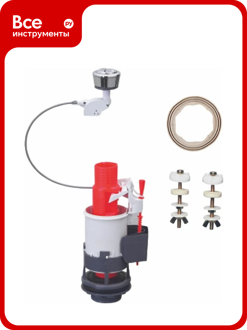 | ВКоробке | Механизм смыва - 1 шт. Крепёжные болты для унитаза - 2 шт. Прокладка между бачком и унитазом - 1 шт. Инструкция - 1 шт. |