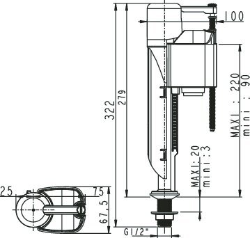 набор механизмов для унитаза MD JOLLYFILL 1 режим Wirquin (10719151)