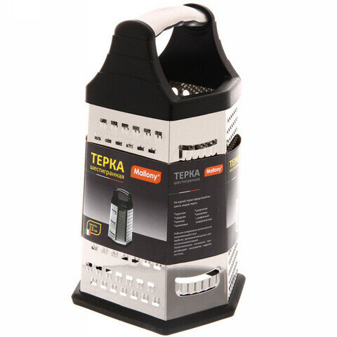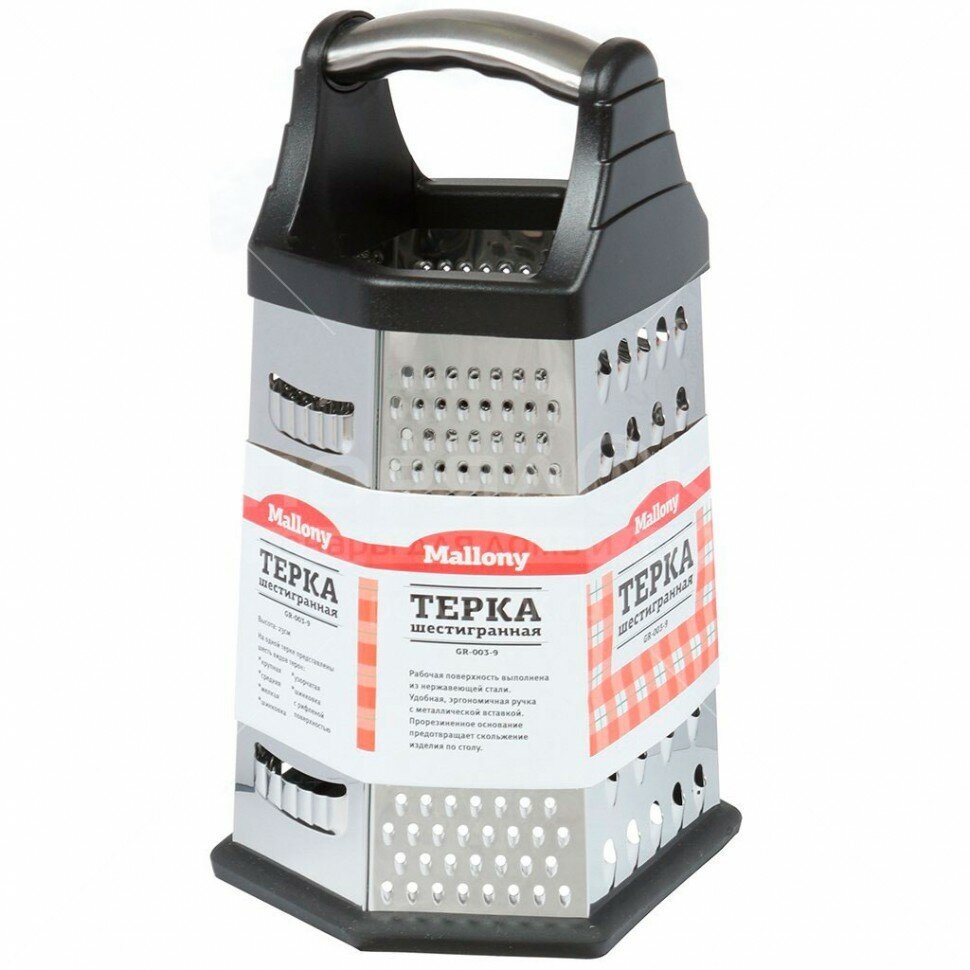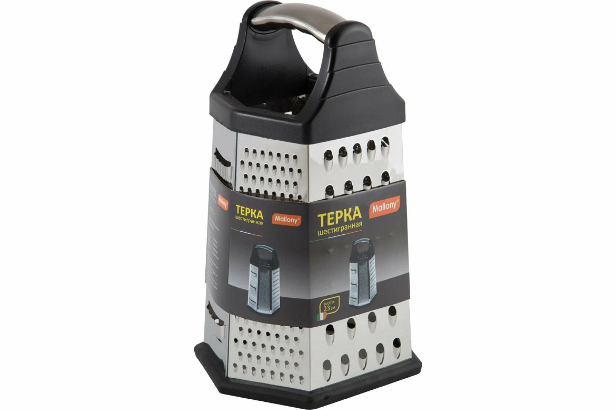 На сегодняшний день товар «терка MALLONY 23см 6-ти гранная универсальная без поддона нерж.сталь пластик черная (965007) (размер: 23 см)» можно купить с кешбеком в 2 магазинах: Холодильник, Яндекс.Маркет
