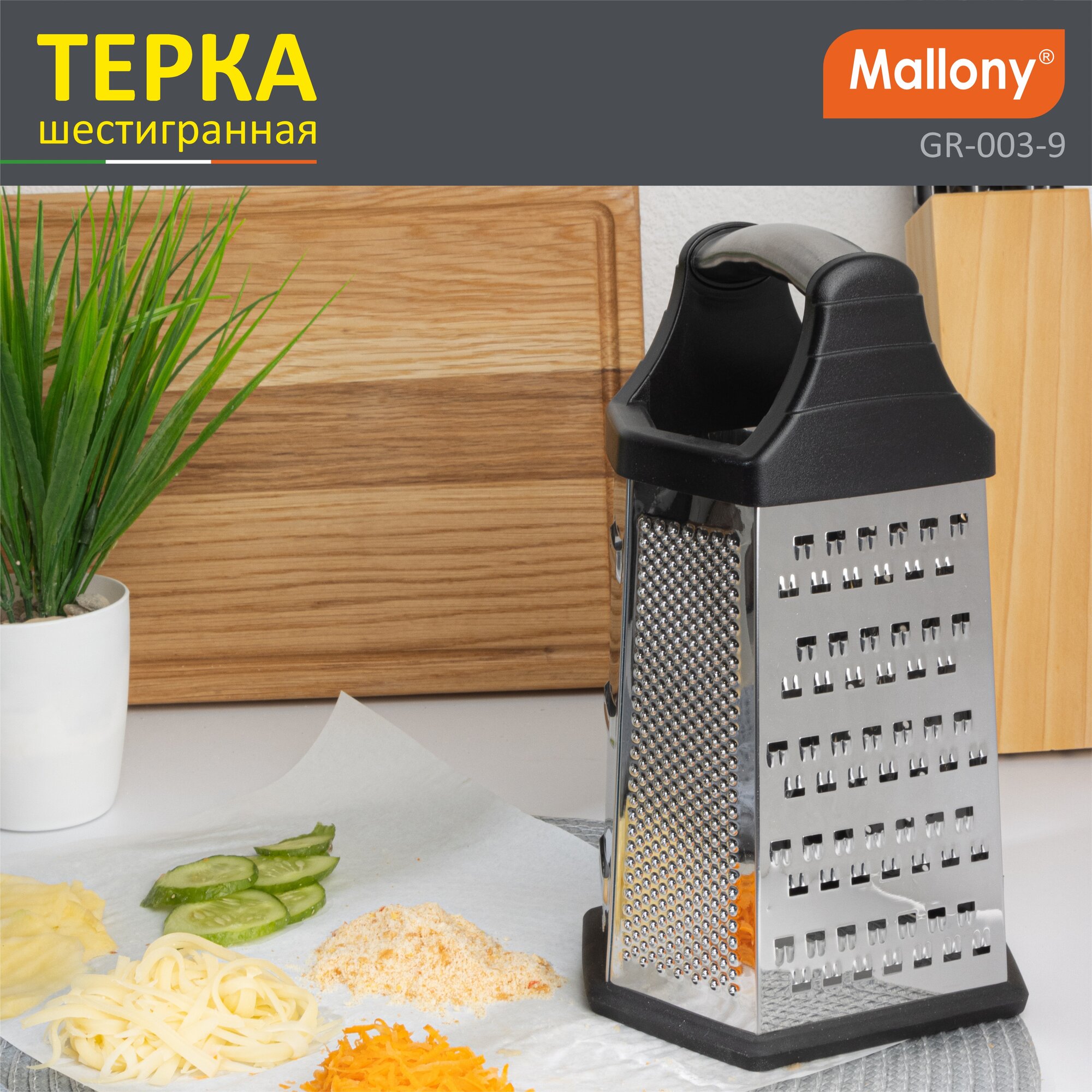 терка MALLONY 23см 6-ти гранная универсальная без поддона нерж.сталь пластик черная (965007) (размер: 23 см)