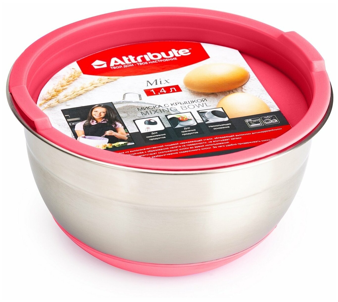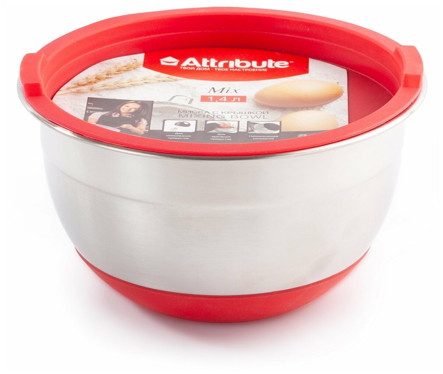 миска ATTRIBUTE 16см 14л с крышкой сталь (ASS018)