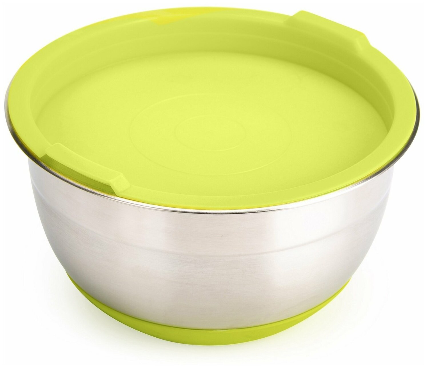 Миска стальная с крышкой MIX - незаменимая вещь для любой хозяйки. Нержавеющая сталь надежна в использовании, за ней просто ухаживать, можно мыть в посудомоечной машине. Силиконовое дно не позволяет миске скользить по поверхности, поэтому она идеально подходит для смешивания продуктов вручную или миксером. Миска обладает функцией хранения продуктов благодаря плотно прилегающей силиконовой крышке. Она функциональна, но в то же время занимает немного места из-за объема 1,4 л.
