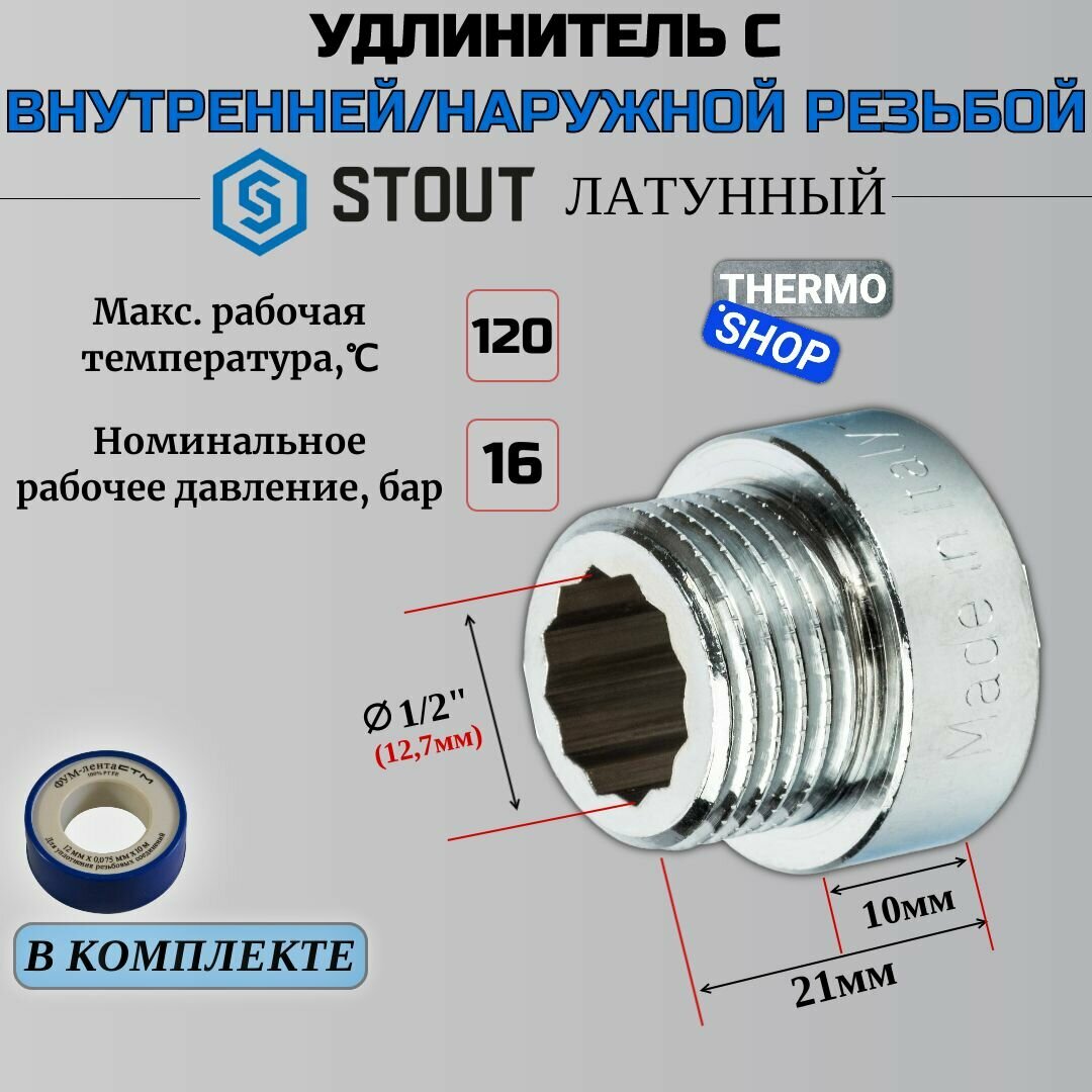 удлинитель STOUT НР/ВР 1/2X10 хром латунь латунь резьба SFT-0002-001210