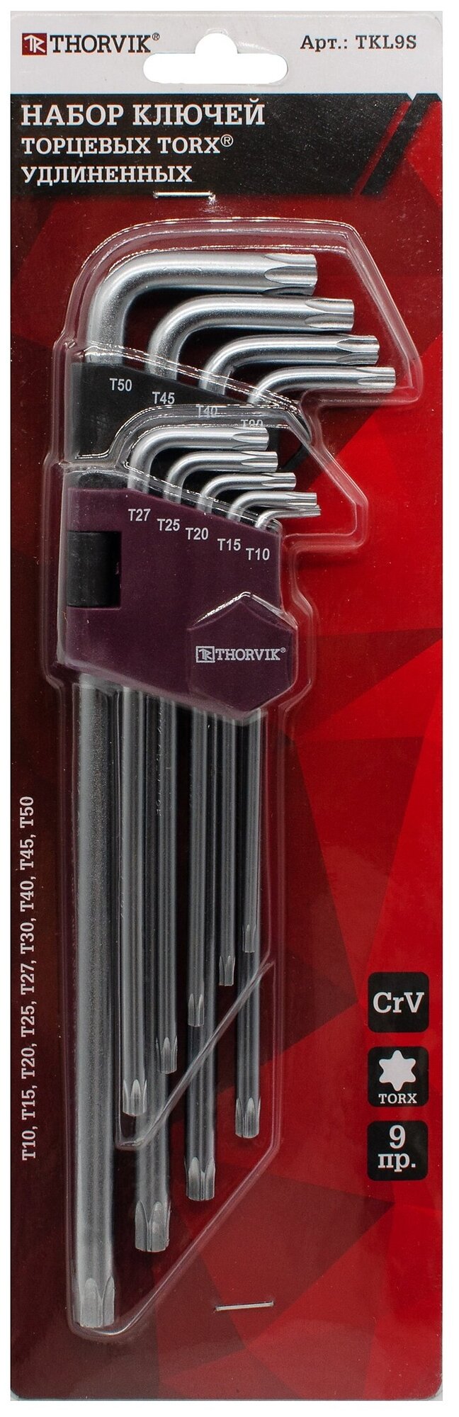 набор ключей торцевых TORX удлиненных THORVIK Т10-T50 9 предметов (TKL9S)