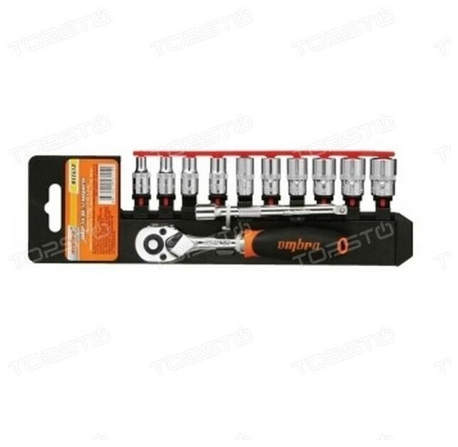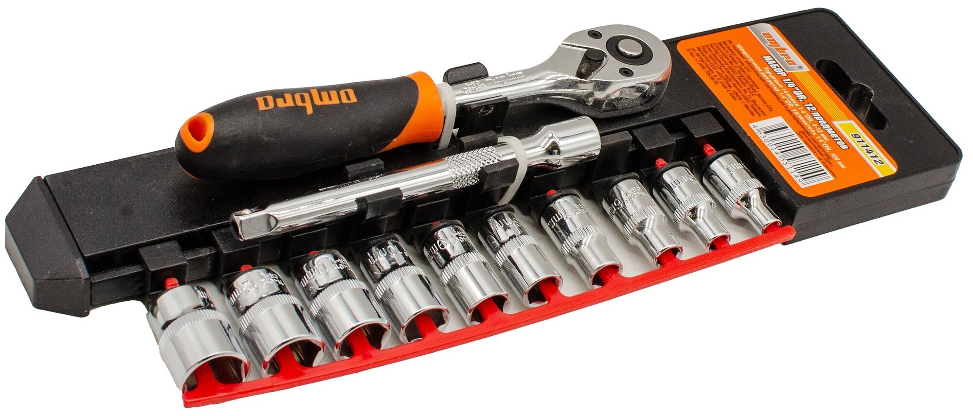набор головок OMBRA с трещоткой 4-13мм 1/4" 12 предметов 911412 головок торцевых с аксессуарами 1/4"DR, 4-13 мм, 12 предметов
