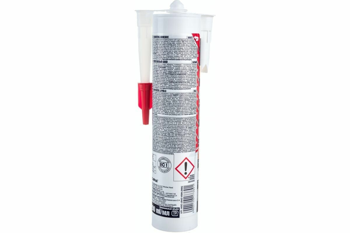Клей на основе гибридных полимеров с мгновенным начальным схватыванием и ускоренным временем отверждения. Он создает прочное соединение, можно нагружать шов уже через 30 минут, а полная прочность достигается через 3 часа.