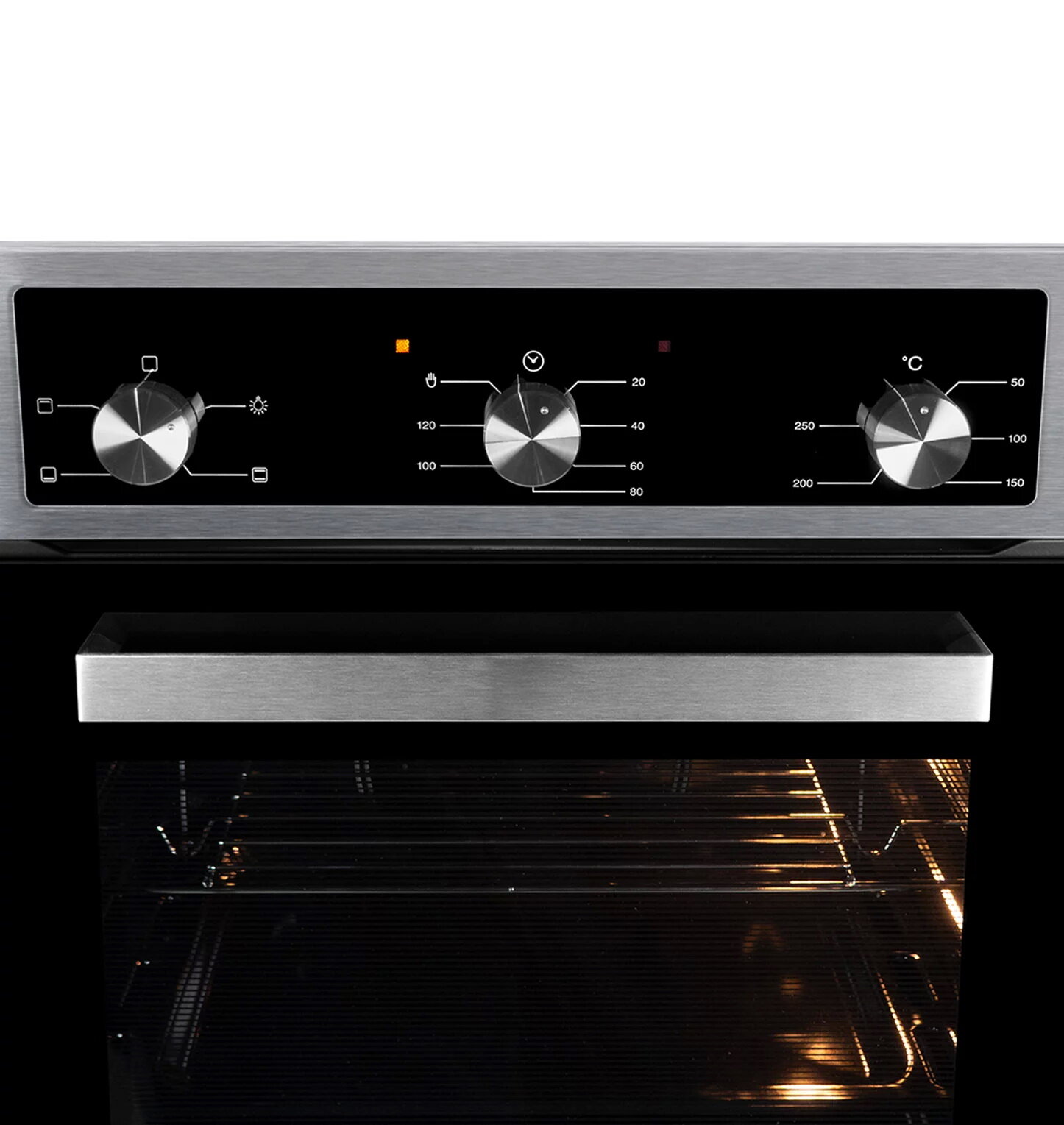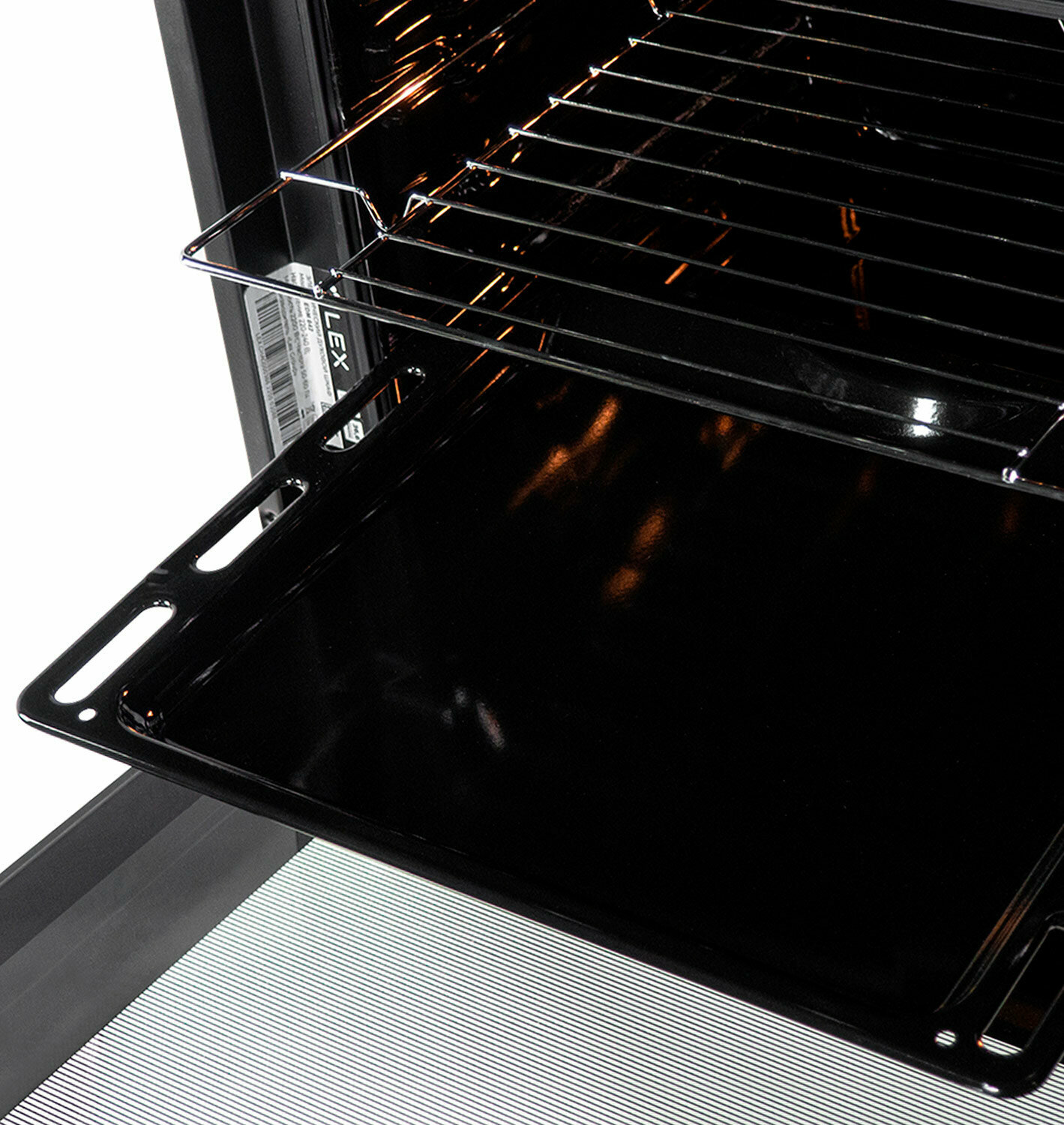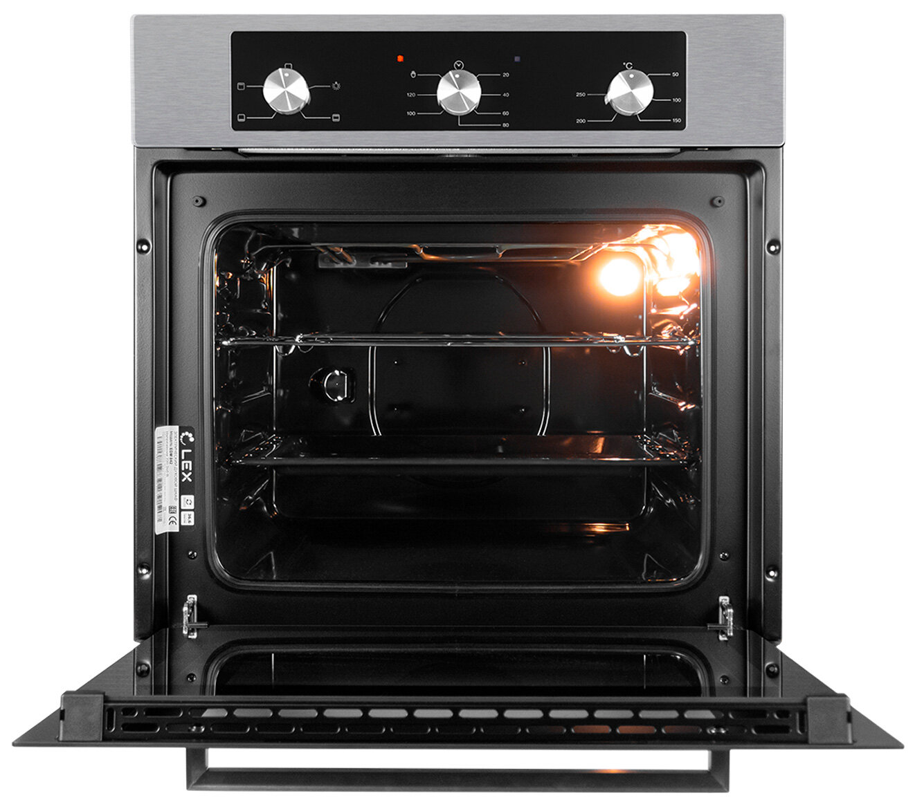 Минималистичный и простой в использовании кухонный помощник - электрический духовой шкаф от LEX. Удобен в эксплуатации и незаменим для ежедневного приготовления вкусных и полезных блюд. Материал: черное закаленное стекло с элементами из нержавеющей стали. Механические ручки, объем 62 л, таймер, 4 функции (традиционный, нижний нагрев, гриль, подсветка), традиционная очистка, в комплекте 1 решетка и 1 противень