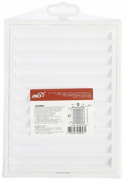 решетка вентиляционная ЭРА 150х200мм RZN пластик белая 1520RZN