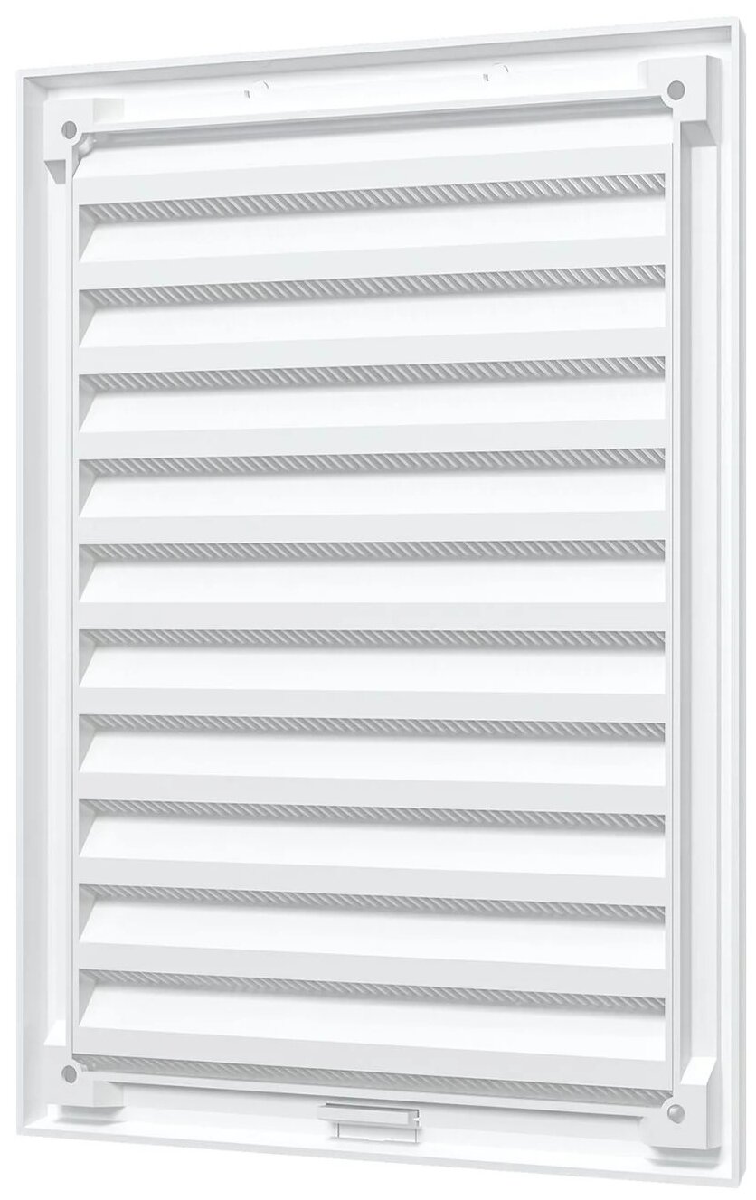 Решетка горизонтальная предназначена для использования в приточно-вытяжной системе вентиляции. Изготовлена из качетсвенного пластика. Конструкция решетки состоит из двух частей: рама и жалюзи с пластиковой сеткой. Решетка разъединяется путем отщелкивания специального пластикового замочка с помощью отвертки. Это значительно упрощает ее ревизию.
