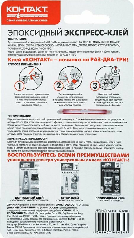 клей эпоксидный КОНТАКТ прозрачный 12 мл. арт.12052