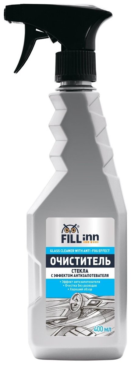 очиститель стекол FILL INN с эффектом антитумана 400 мл FL048 стекол с эффектом антизапотевателя, 400 мл спрей