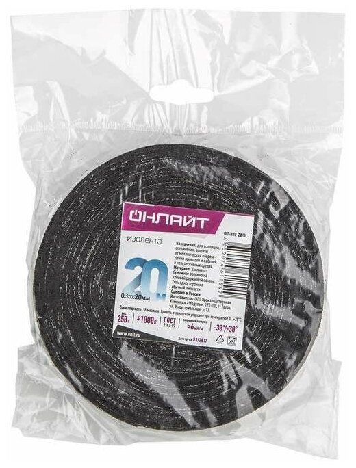 изолента ОНЛАЙТ ХБ 035х20мм 20м 250г черный 61 154 OIT-H20-20/BL