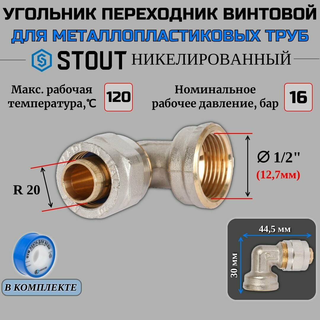 угольник обжим STOUT металлопластиковый ВР 1/2х20 (SFS-0007-001220)