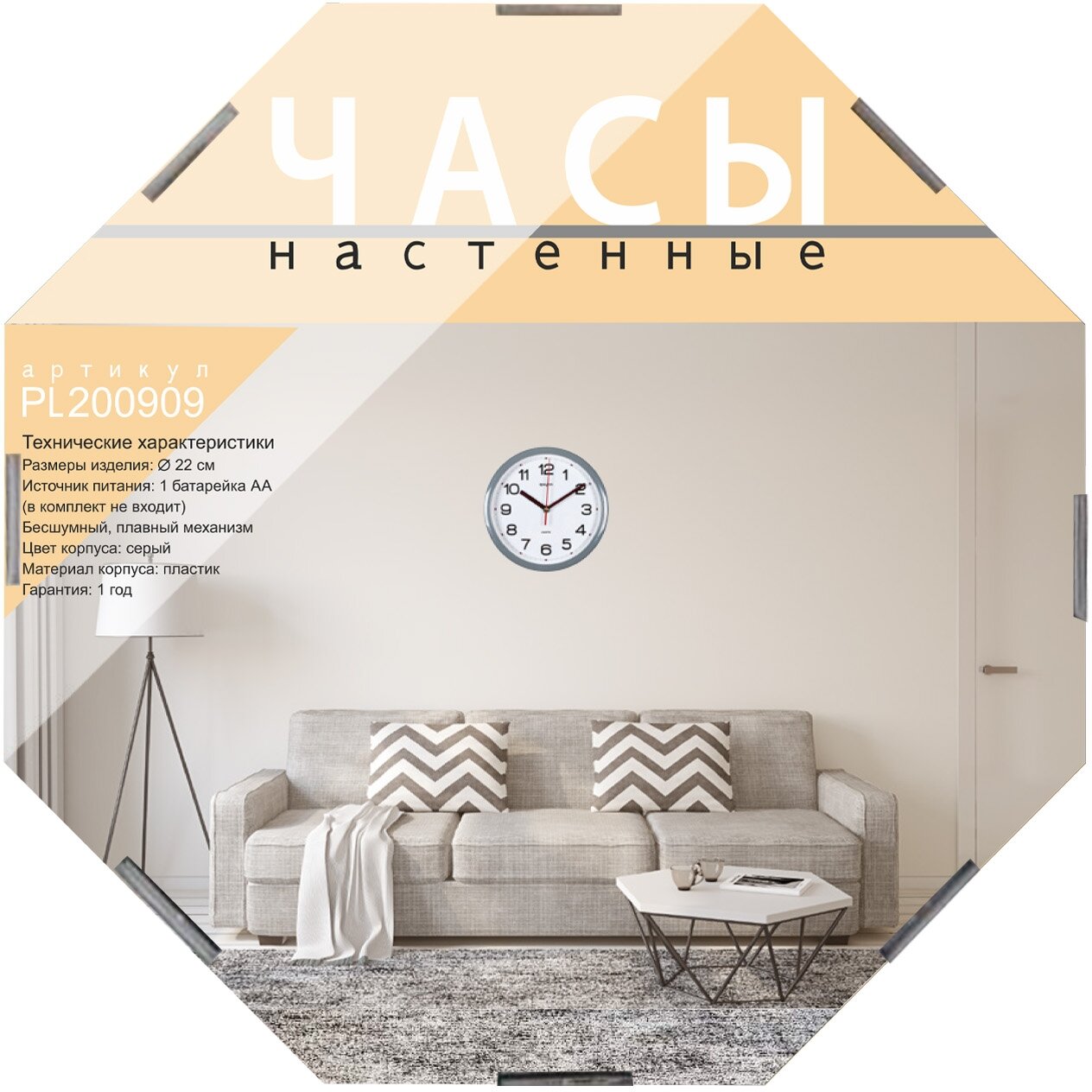 Настенные часы с артикулом PL200909 представлены в круглом дизайне. Незаметное крепление на задней части корпуса гарантирует надежный монтаж на стену и легкое снятие для замены элементов питания. Циферблат отображает часы, минуты и секунды. Часы привлекают внимание за счет своих крупных отметок, которые хорошо различимы издалека. Модель обладает пластиковым корпусом и надежным кварцевым механизмом. Работают от 1 батарейки АА "пальчиковая", в комплект не входит.Преимущества:- Корпус из экологичного пластика.- Бесшумный механизм.- Редкая замена батареек благодаря экономичному механизму.