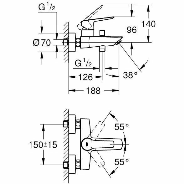Смеситель для ванны ''Grohe Start 2021'' настенного монтажа - современный стиль и премиальное качество. Этот элегантный однорычажный смеситель оснащен передовыми технологиями ''Grohe''. Благодаря керамическому картриджу ''Grohe SilkMove'' управление напором и температурой воды осуществляется точно и просто. Многослойное хромовое покрытие ''Grohe StarLight'' гарантирует, что поверхность смесителя сохранит свой блеск на долгие годы. Смеситель отлично подойдет к другим продуктам линейки.