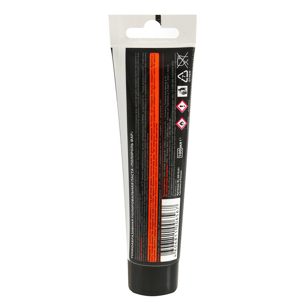 Полироль фар Eltrans EL-0810.01, туба, 100 мл -используется для удаления царапин, потускнения и заветривания пластиковых фар автомобиля, что позволяет вернуть им прозрачность и должную освещаемость. Полироль эффективно удаляет следы реагентов. Восстановление светового потока фар способствует повышению уровня комфорта и безопасности вождения в темное время суток.