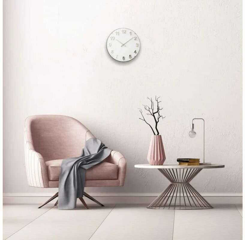Настенные часы с артикулом изготовлены в форме круга, который является символом бесконечности и совершенства. Данная модель представляет собой часы с корпусом из экологичного пластика. Лицевая сторона часов защищена минеральным стеклом. На циферблате белого цвета расположены арабские цифры и две стрелки. Часы сохранят тишину в помещении благодаря использованию бесшумного механизма плавного хода, который работает от батарейки стандарта АА (не входит в комплект). Преимущества:- Корпус из экологичного пластика.- Бесшумный механизм.- Редкая замена батареек благодаря экономичному механизму.