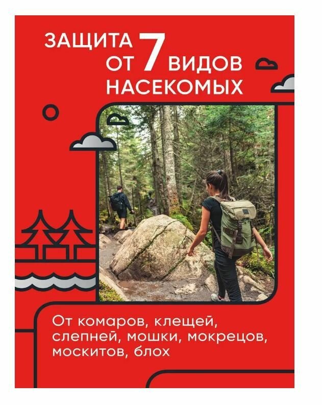 | Состав | 3 активных компонента для максимальной защиты: ДЭТА, эвкалипт, пихта |