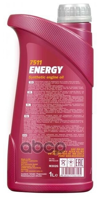 масло моторное MANNOL Energy 5W30 SL 1 л (7016)