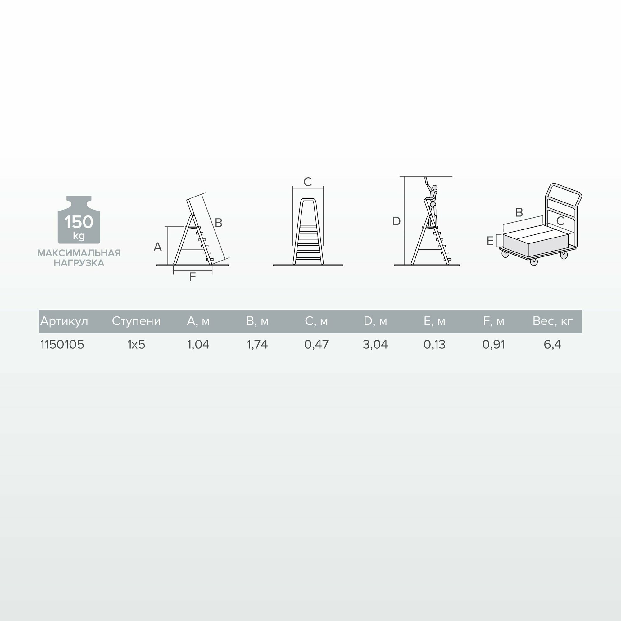 стремянка стальная Новая Высота 5 ступеней 100 серия 1150105