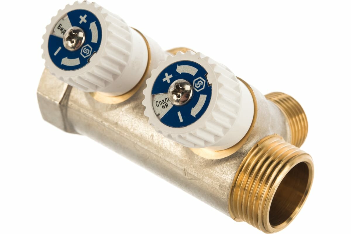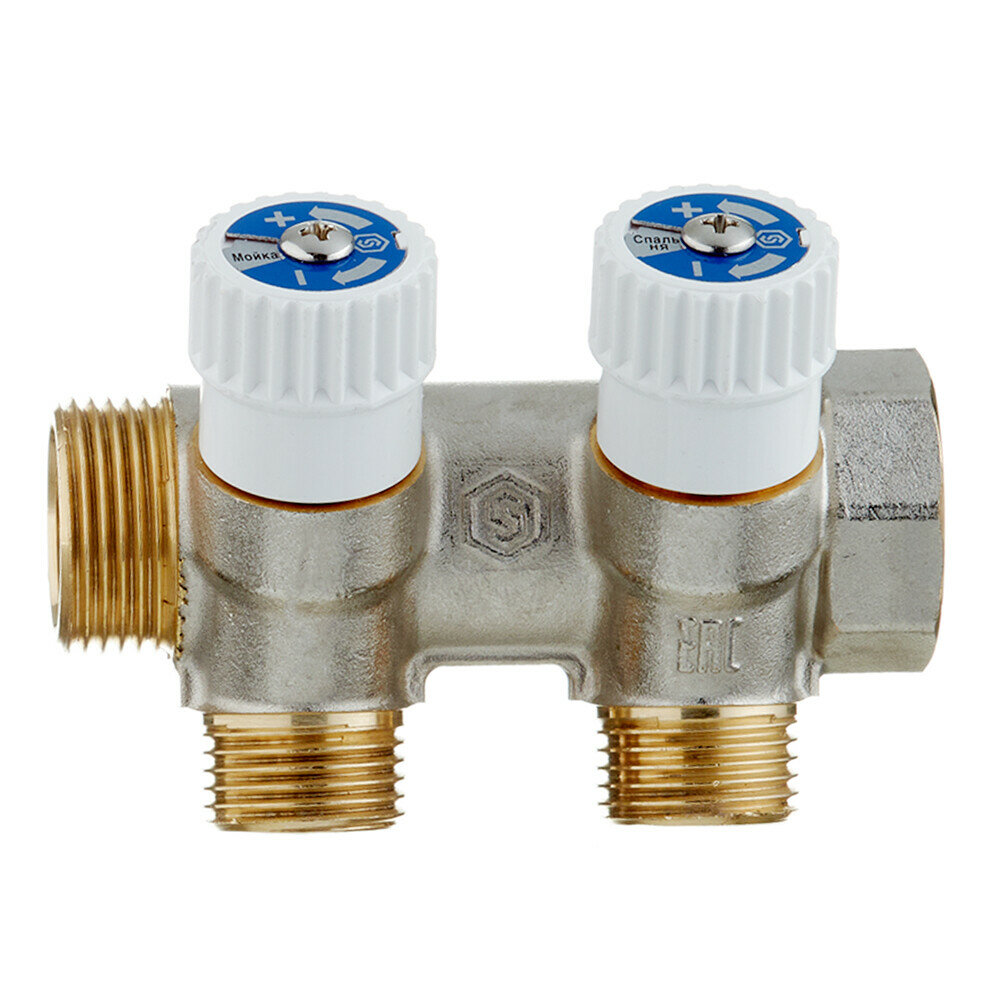 коллектор 2 выхода STOUT 3/4" х 1/2" НР с регулирующими вентилями латунь (SMB 6851 341202)