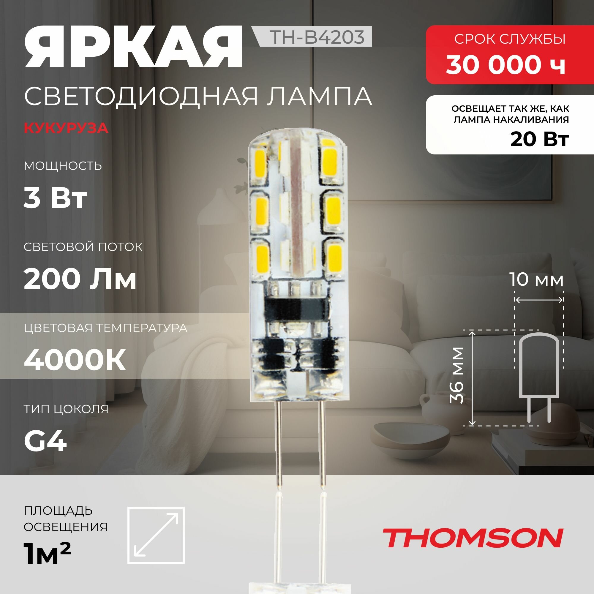 Лампочка светодиодная Thomson, TH-B4203, 3W, G4