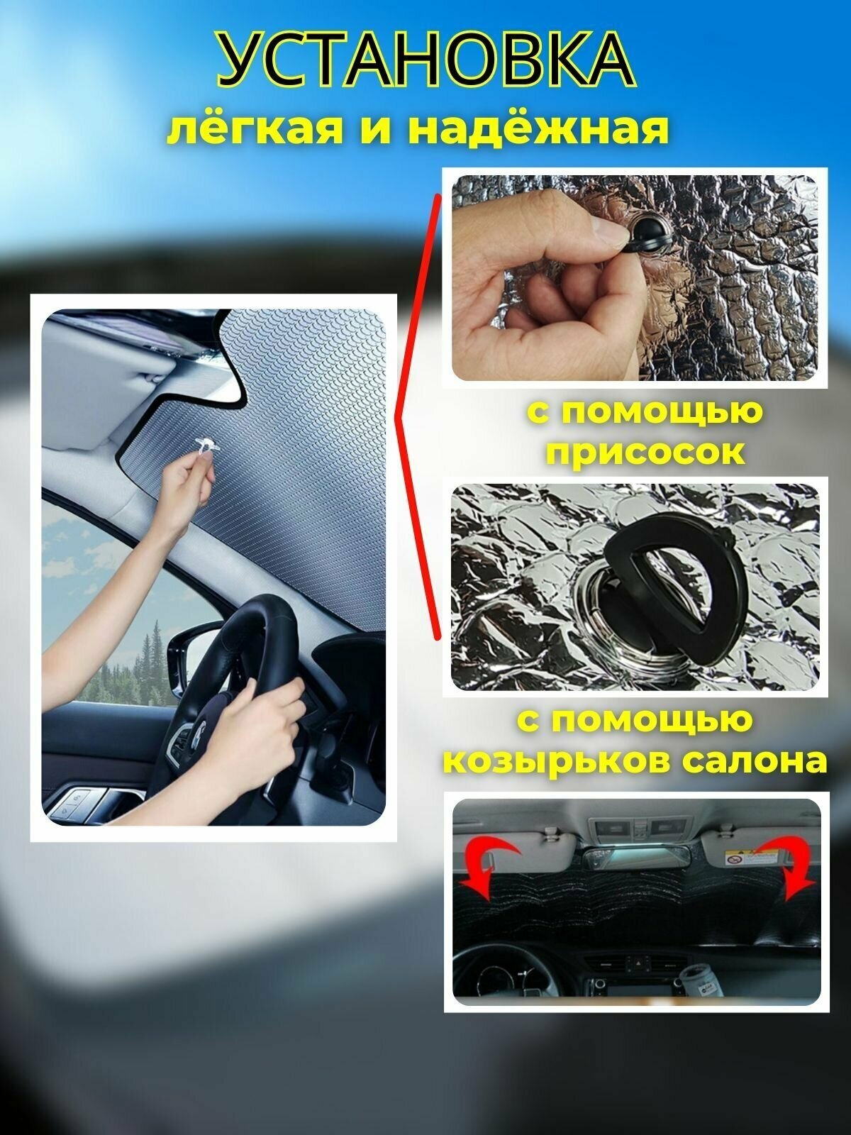 Автомобильная шторка солнцезащитная на лобовое стекло - это отличный выбор для защиты вашей машины от солнца и ярких лучей. Это простой и эффективный способ обеспечить комфортный внутренний климат вашего автомобиля. Автоштора представляет собой внутренний экран, который отражает и блокирует 99% вредных лучей солнца и защищает панели и детали салона вашего автомобиля от выцветания и повреждений. Шторка выполнена из качественного материала, который легок в уходе и обладает свойством светоотражения, что позволяет сохранять комфортную температуру в автомобиле даже в жаркие дни. Она изготовлена из качественных материалов, включая светоотражающую фольгу и пластик, которые обеспечивают надежную защиту от солнца и тепла. Двустороннее покрытие материала делает шторку непрозрачной, что позволяет ей защищать от солнечных лучей еще более эффективно. Универсальное крепление осуществляется с помощью присосок, которые легко крепятся к лобовому стеклу. Шторка солнцезащитная на лобовое стекло - это универсальный аксессуар, который подходит для большинства моделей легковых автомобилей. Она может использоваться как на переднем лобовом стекле, так и на боковых стеклах. Это универсальное решение для тех, кто ценит комфорт и защиту своего автомобиля