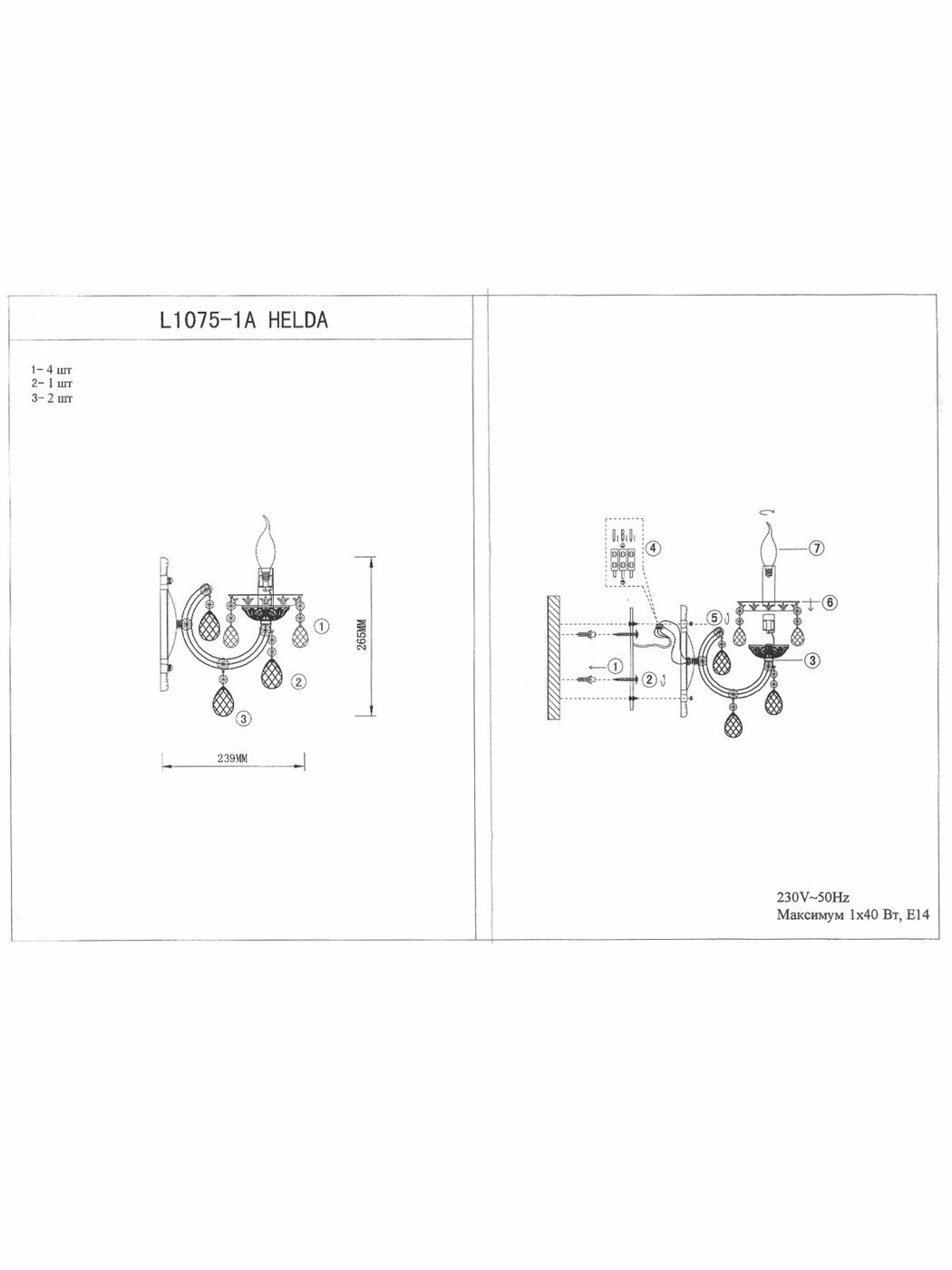 | Максимально допустимая мощность лампы (Вт) | 40 |