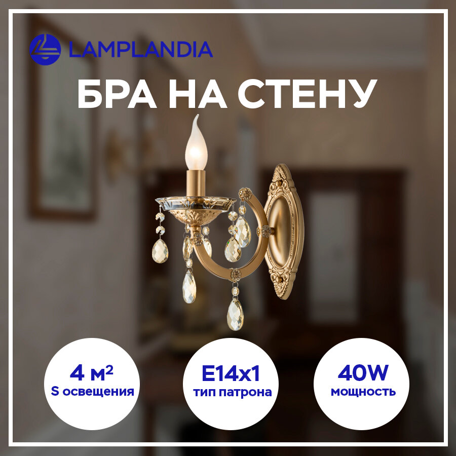 бра LAMPLANDIA Helda 1х40Вт E14 металл золотая (L1075-1A)