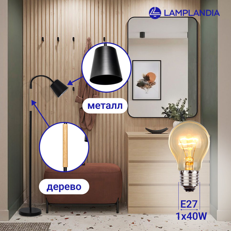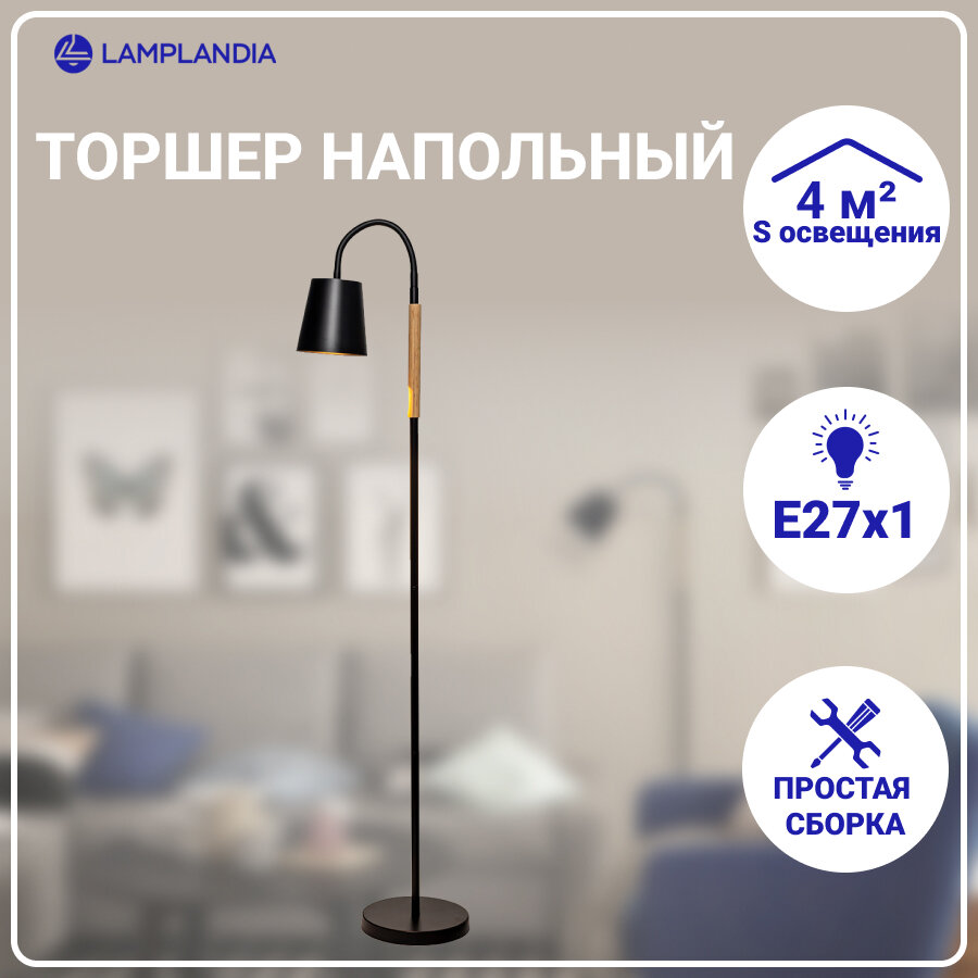 На сегодняшний день товар «торшер LAMPLANDIA Lumber black 1х40Вт E27 металл дерево черный (L1487)» можно купить с кешбеком в 1 магазине: Яндекс.Маркет