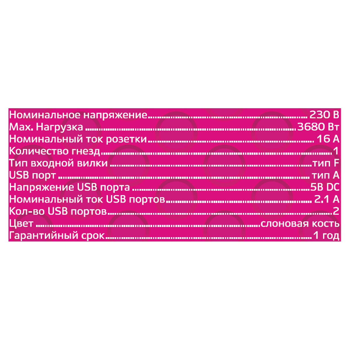 | Количество розеток | 1 |