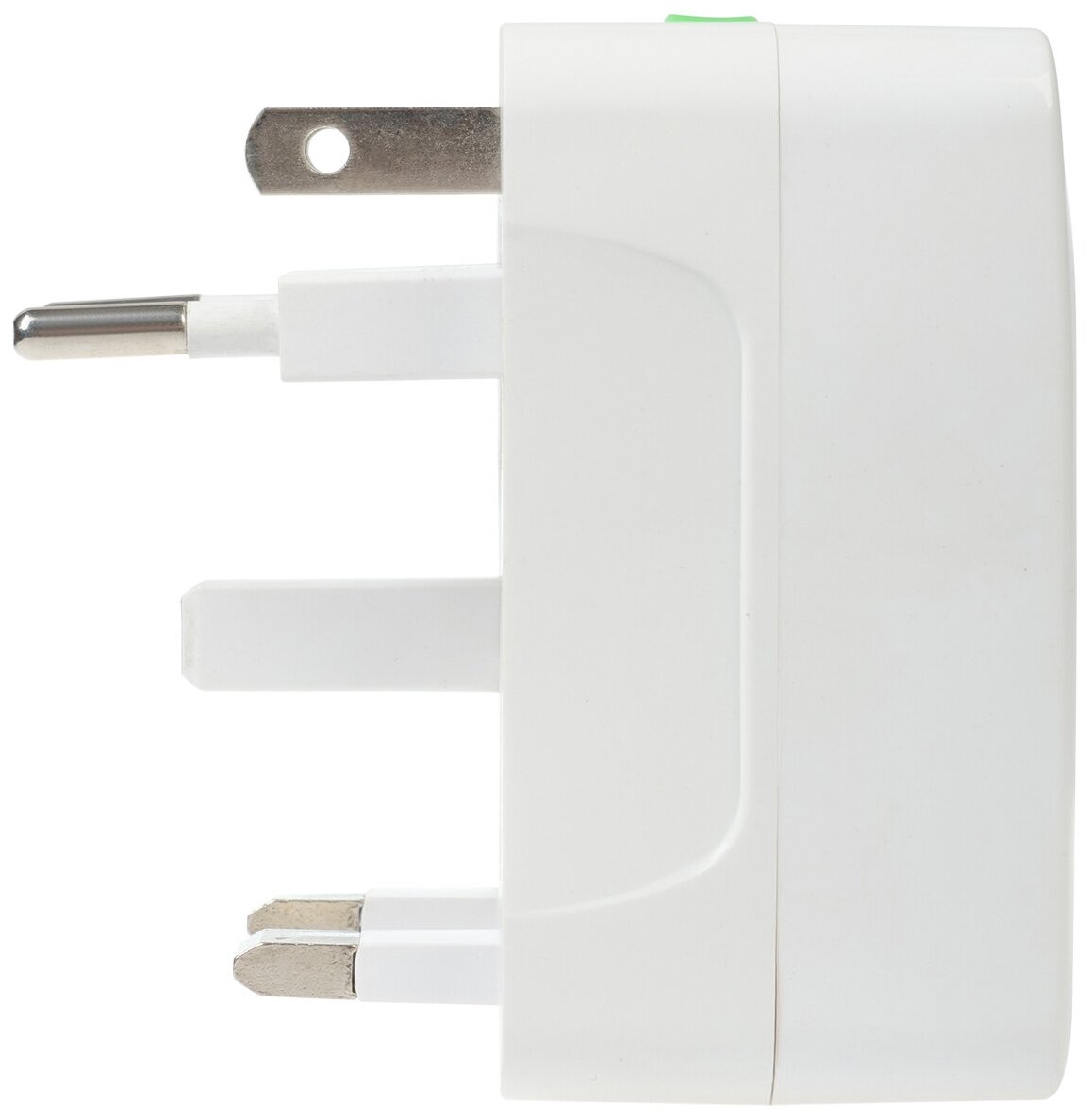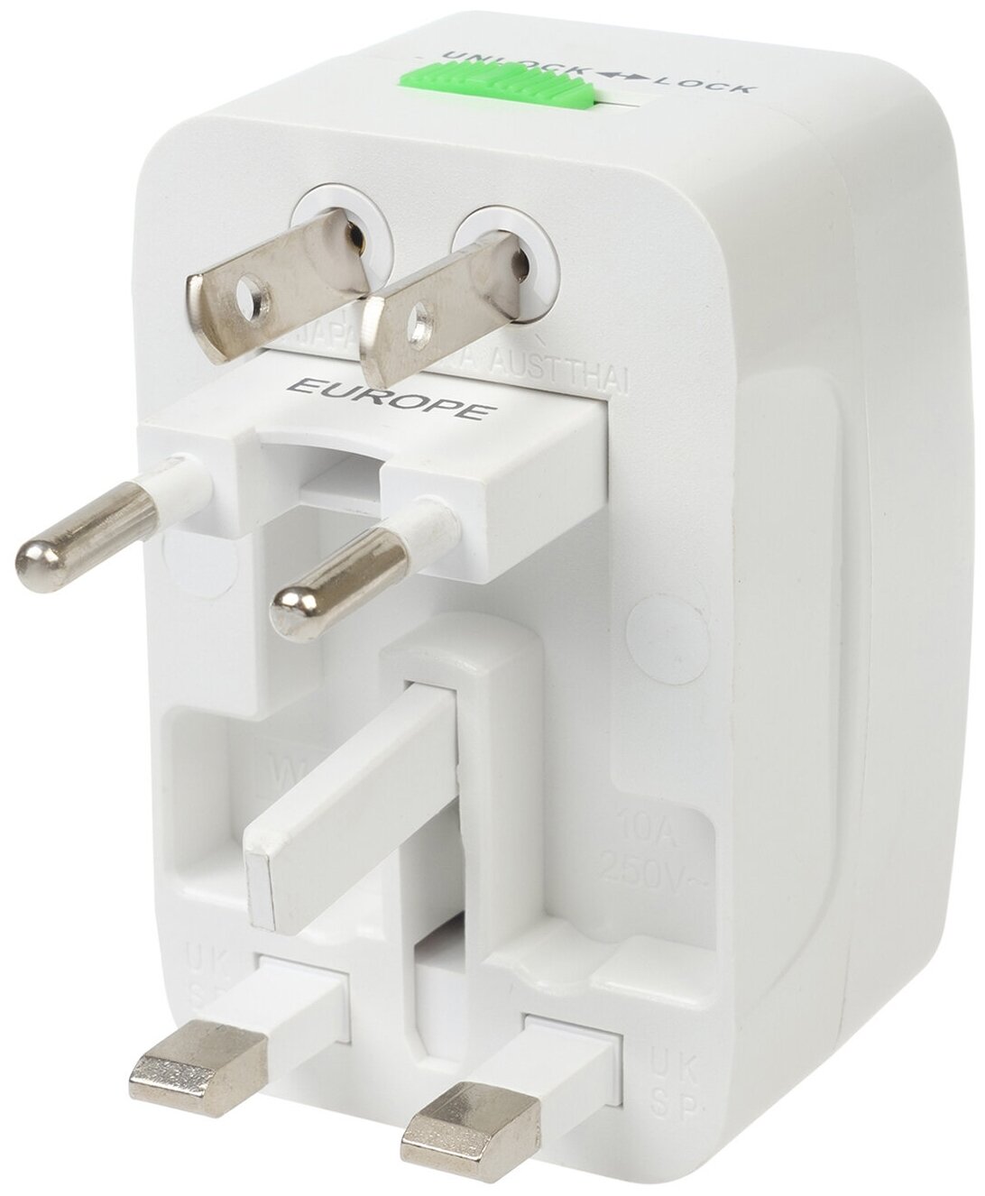 Адаптер сетевой портативный со встроенными переходными вилками. Совместим со стандартами электросети более чем 150 стран. Разъем переходника рассчитан на следующие типы розеток: А ? Япония, Америка, Азия; С ? Европа; G ? Англия; I ? Австралия, Новая Зеландия. Переходные вилки открываются и закрываются при помощи переключателя LOCK/UNLOCK. Не включайте адаптер в сеть с не подходящим электрическим напряжением во избежание повреждений.