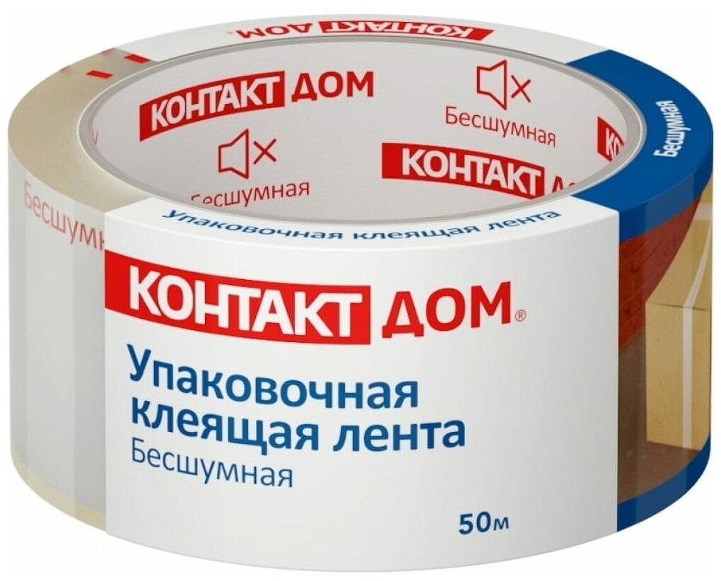Клейкая лента ''Контакт Дом'' используется для упаковки и склеивания поверхностей. Имеет уникальное свойство - ''бесшумная'', что позволяет работать без характерного шума, который есть у обычной ленты.