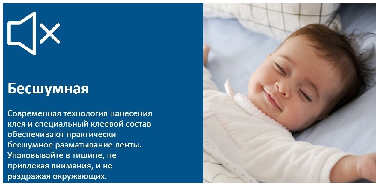 Использование современных технологий обеспечивает бесшумность при разматывании, что создает дополнительный комфорт при использовании ленты дома и в офисе. Лента легко разматывается, надежно склеивает и обладает повышенной прочностью.