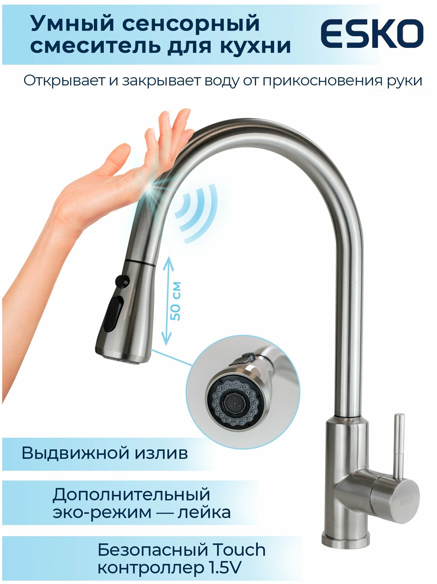 смеситель для кухни ESKO Тouch element сенсорный нержавещая сталь (TSS 519)