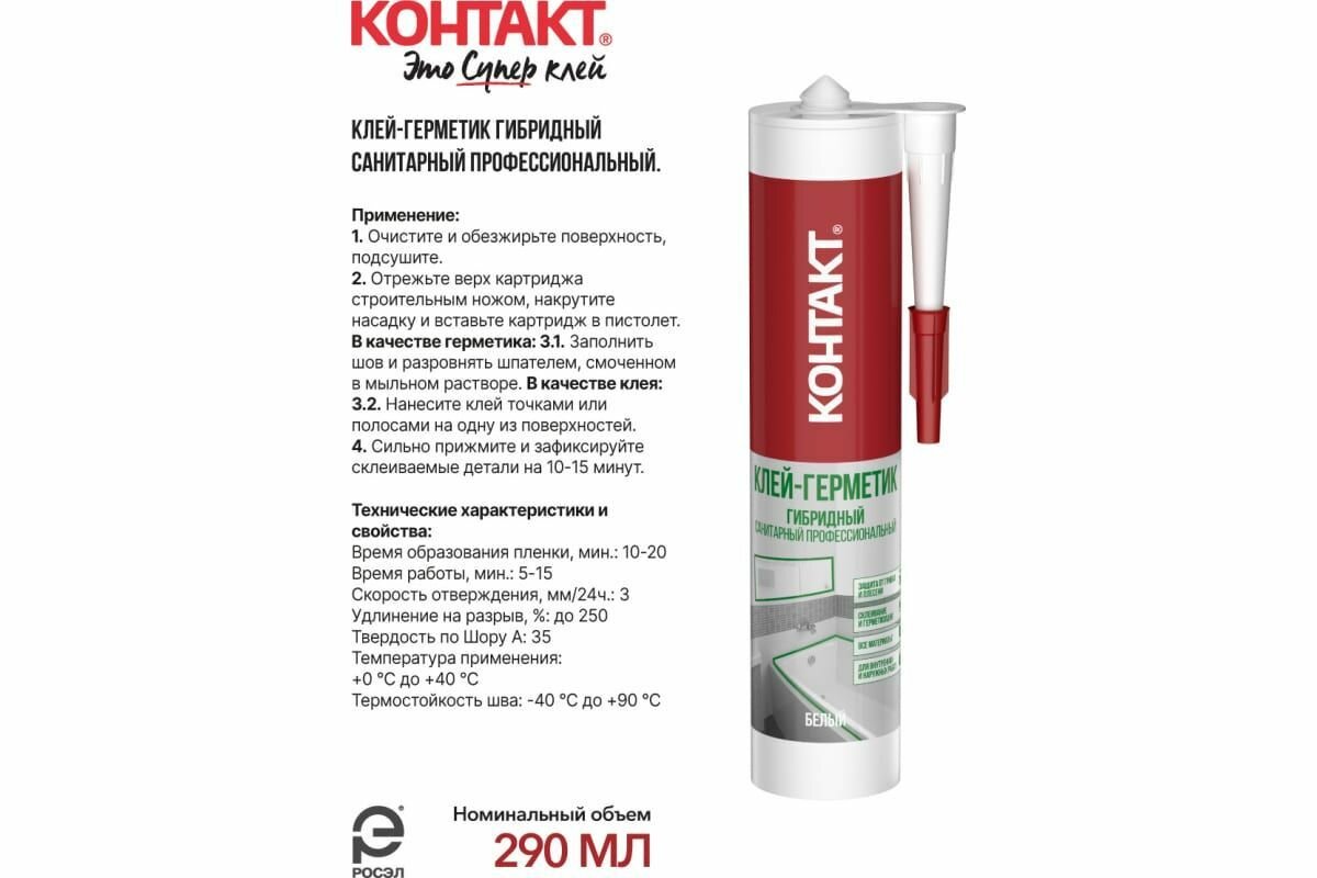 Сервис сравнения цен СкидкаГИД предлагает сравнить цены на товар «герметик-клей гибридный КОНТАКТ санитарный 290мл белый арт.24503»