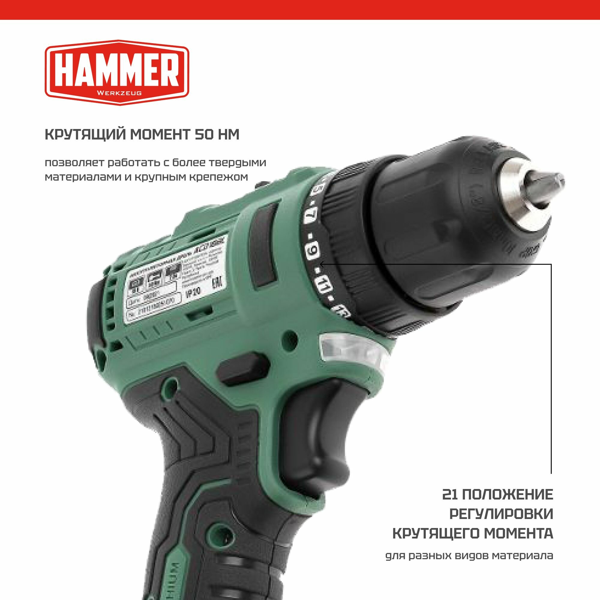 дрель-шуруповерт HAMMER ACD18BL 18В 2Ач Li-Ion 2 аккумулятора (824164)