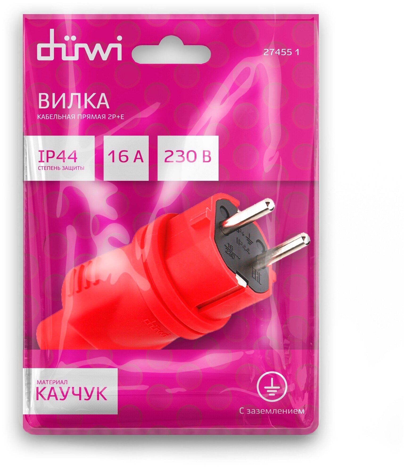 вилка кабельная каучуковая прямая DUWI с/з IP44 16A красная 27455 1