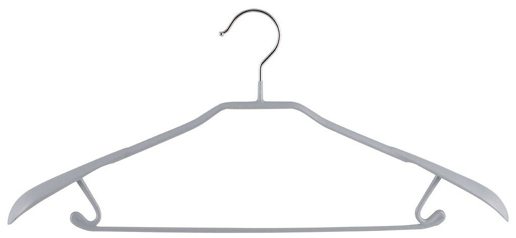 Идеально подходят для открытого хранения благодаря минималистичному дизайну и нейтральному цвету. Вешалка облегчает хранение брюк и юбок и помогает избежать деформации вещей.Преимущества:- Имеет небольшой вес, поэтому удобна при переноске;- Выполнена из металла, благодаря чему отличается прочностью;- За счет компактных размеров не занимает много места;- Устойчива к влаге, поэтому имеет долгий срок службы;- За счет покрытия из ПВХ не царапает одежду.