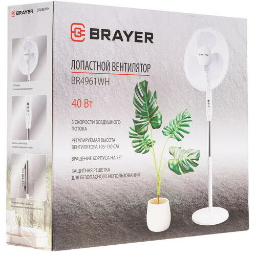 вентилятор напольный BRAYER BR4961WH 40Вт 3 режима белый