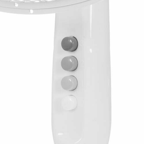 Лопастной вентилятор, 3 полипропиленовые лопасти. Механическая панель управления. 3 скорости воздушного потока. Автоматическое вращение корпуса на 75°. Мощность 40 Вт. Регулируемая высота вентилятора 105-130 см
