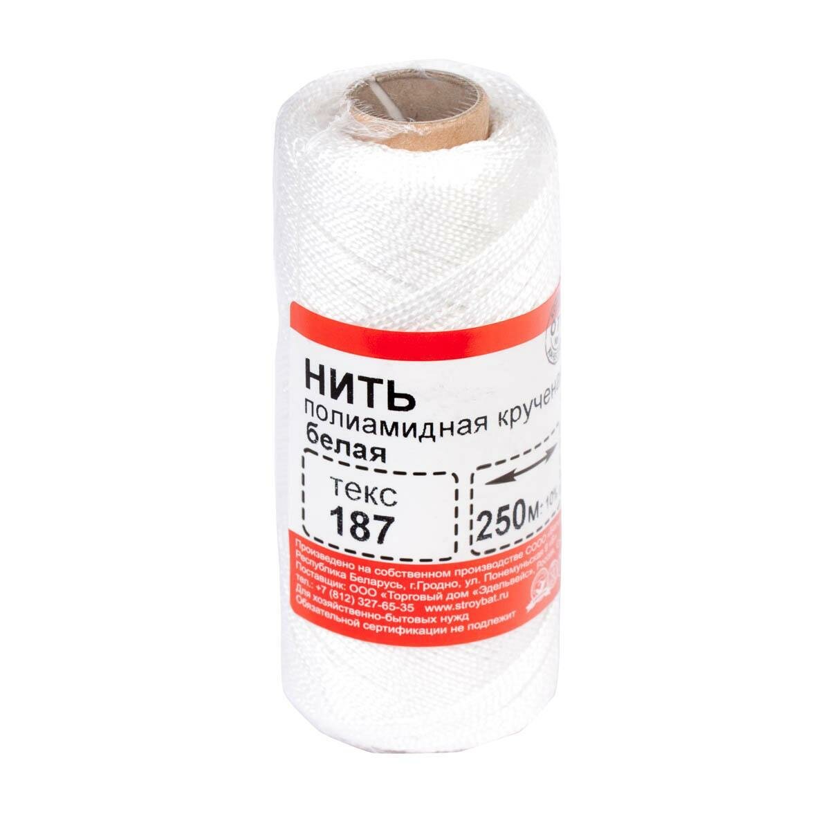нить крученая 10 мм 250 м полипропилен 187 текс белая Стройбат 18668