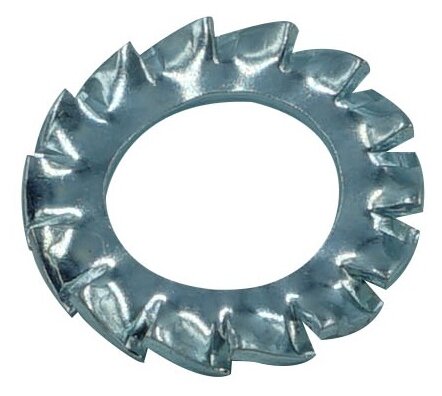 Шайба стопорная DIN6798А с наружными зубьями М4 16 шт. Предназначена для увеличения опорной площади и снижения нагрузок на поверхность детали, а также для того, чтобы предотвратить процесс самовывинчивания крепежных элементов. Наружные зубчики обеспечивают надежное схватывание с поверхностью соединяемого изделия. Форма зубчиков такова, что при завертывании гайки, врезаясь острыми гранями в гайку и в опорную поверхность корпуса, препятствуют ее откручиванию. Цинковое покрытие защищает от коррозии.стопорная с наружнымизубьями Zn М4 (16 шт)Стопорная шайба — это крепежный элемент, предназначенный для обеспечения надежности любого резьбового соединения, повышения его устойчивости к механическим воздействиям извне. В отличие от шайб обычных, стопорные имеют в своей конструкции такие элементы, как насечки, зубья и лапки, а также разрезы. Классическая шайба стопорная применяется в том случае, когда изделие переносит существенное механического воздействие, а также вибрацию.