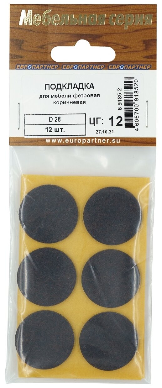 На сегодняшний день товар «подкладка фетр 20мм коричневый 12шт Европартнер (6 9183 2)» можно купить с кешбеком в 1 магазине: Яндекс.Маркет