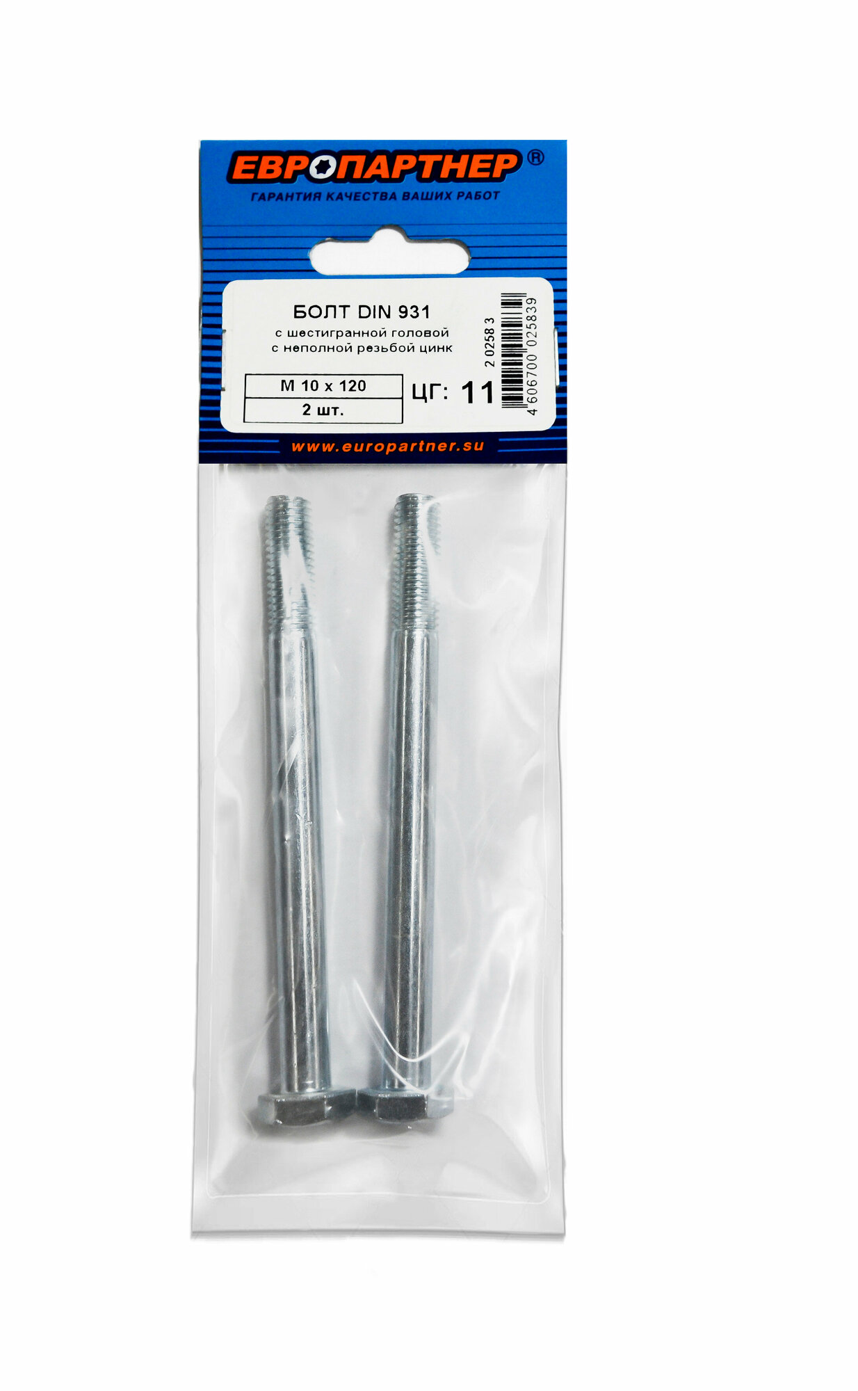 болт DIN931 с неполн рез 10х120 2 шт Европартнер (2 0258 3)