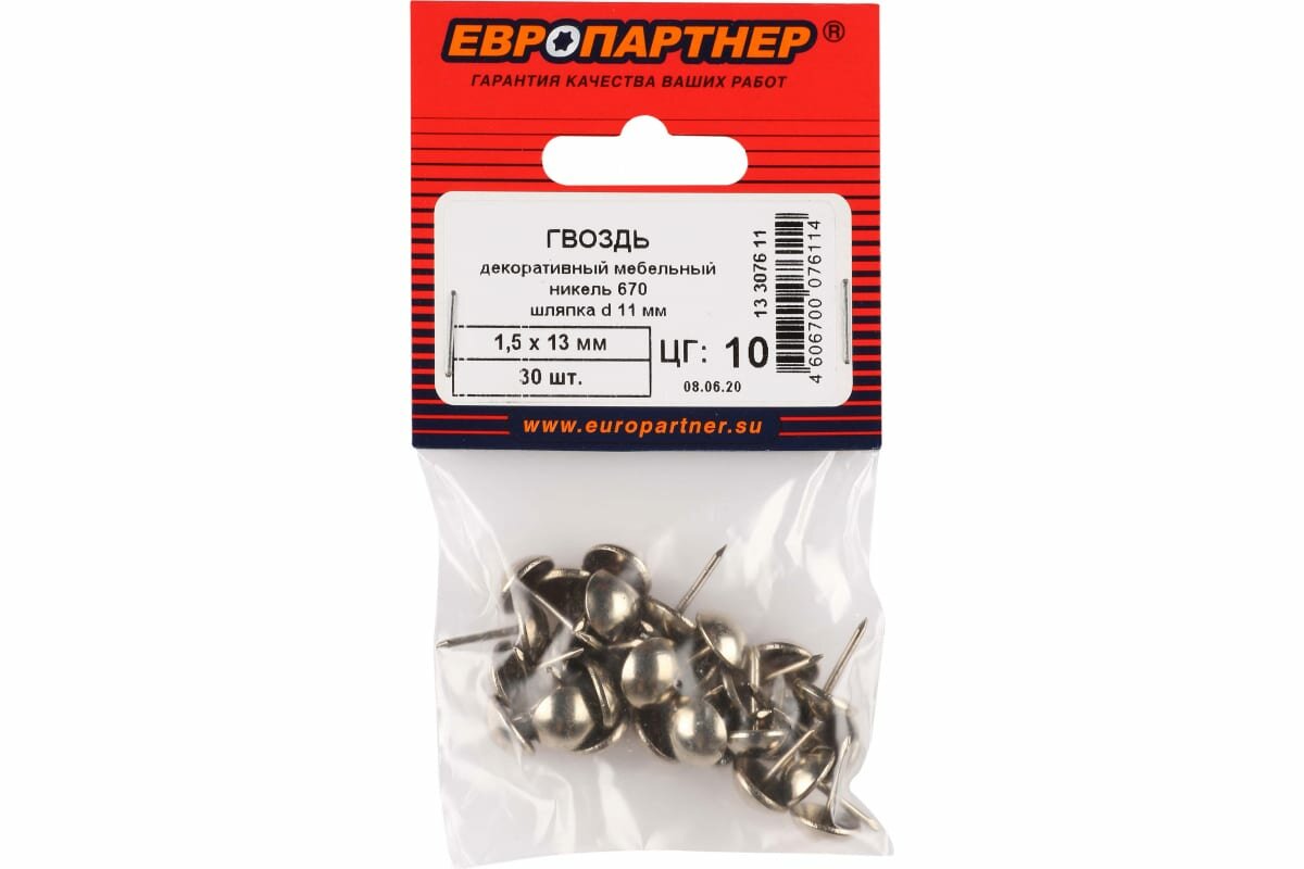 На сегодняшний день товар «гвозди мебельные никелированные 15х13мм 30шт Европартнер (13 3076 11)» можно купить с кешбеком в 1 магазине: Яндекс.Маркет