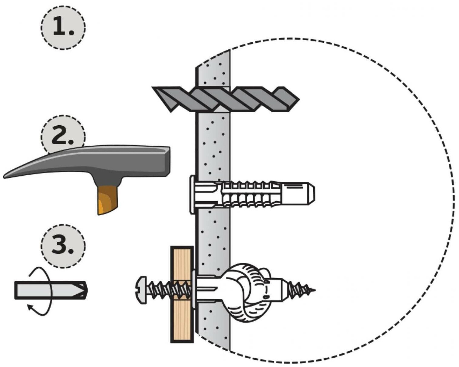 Универсальный дюбель PDU N 6 может использоваться в листовых, полнотелых, пустотелых материалах. Распорная часть дюбеля позволяет работать в полнотелых материалах как обычный дюбель, а в пустотелых и листовых заворачиваться в узел при затягивании шурупа. Манжета дюбеля предотвращает продавливание дюбеля в отверстие при креплении к листовым и пустотелым материалам. При необходимости манжета дюбеля может быть удалена. При монтаже используются универсальные шурупы. Диаметр универсального шурупа для оптимального монтажа от 3 мм до 4.5 мм Длина шурупа равна длине дюбеля L + толщина прикрепляемого материала. Нагрузка: в бетон - 20 кг.; в гипсокартон (12,5мм) - 10 кг.