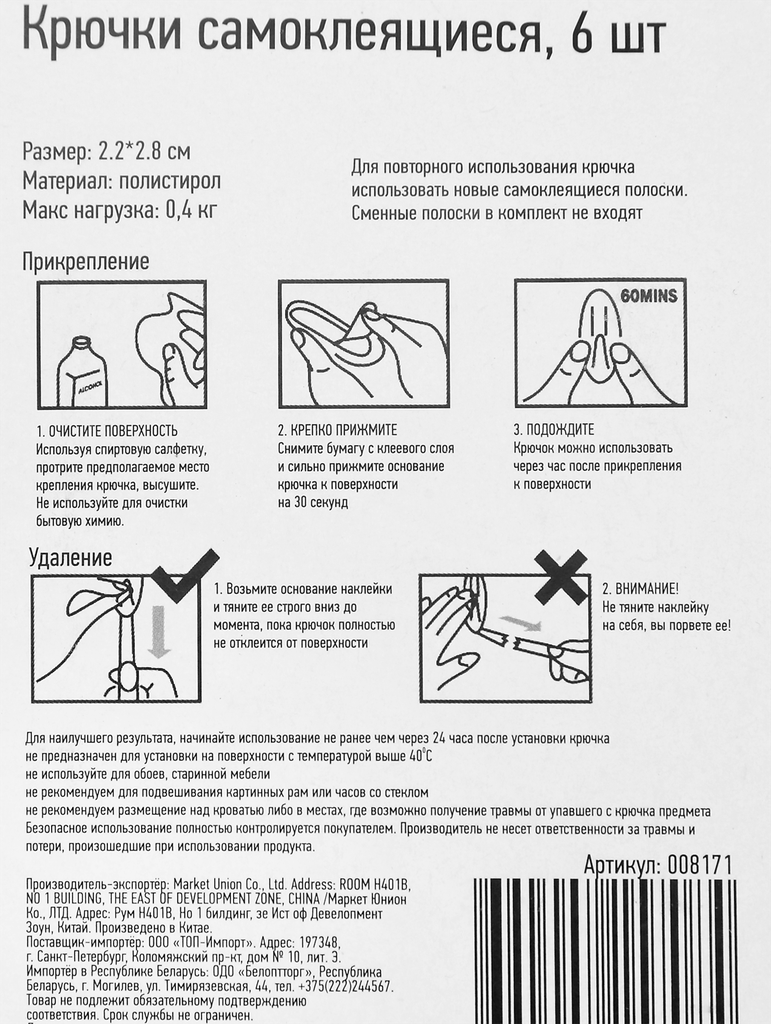 На сегодняшний день товар «крючок самоклеящийся PARK прозрачный до 04кг 6шт (008171)» можно купить с кешбеком в 1 магазине: Яндекс.Маркет