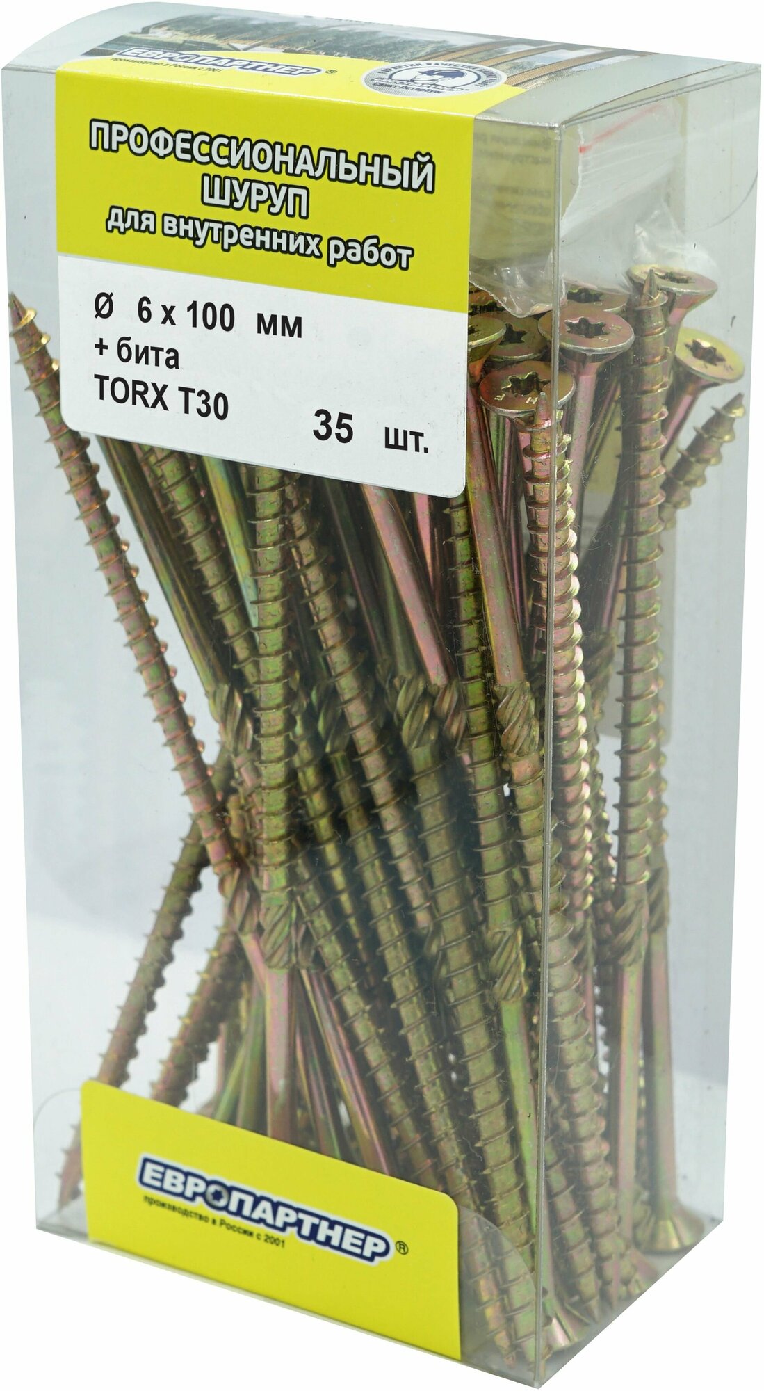 шуруп конструкционный для дерева 60х100мм TORX30 35шт + бита Европартнер (B3 0053)
