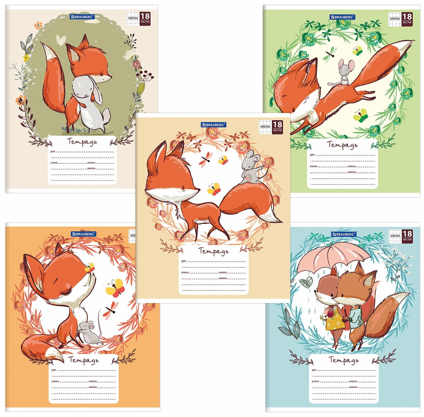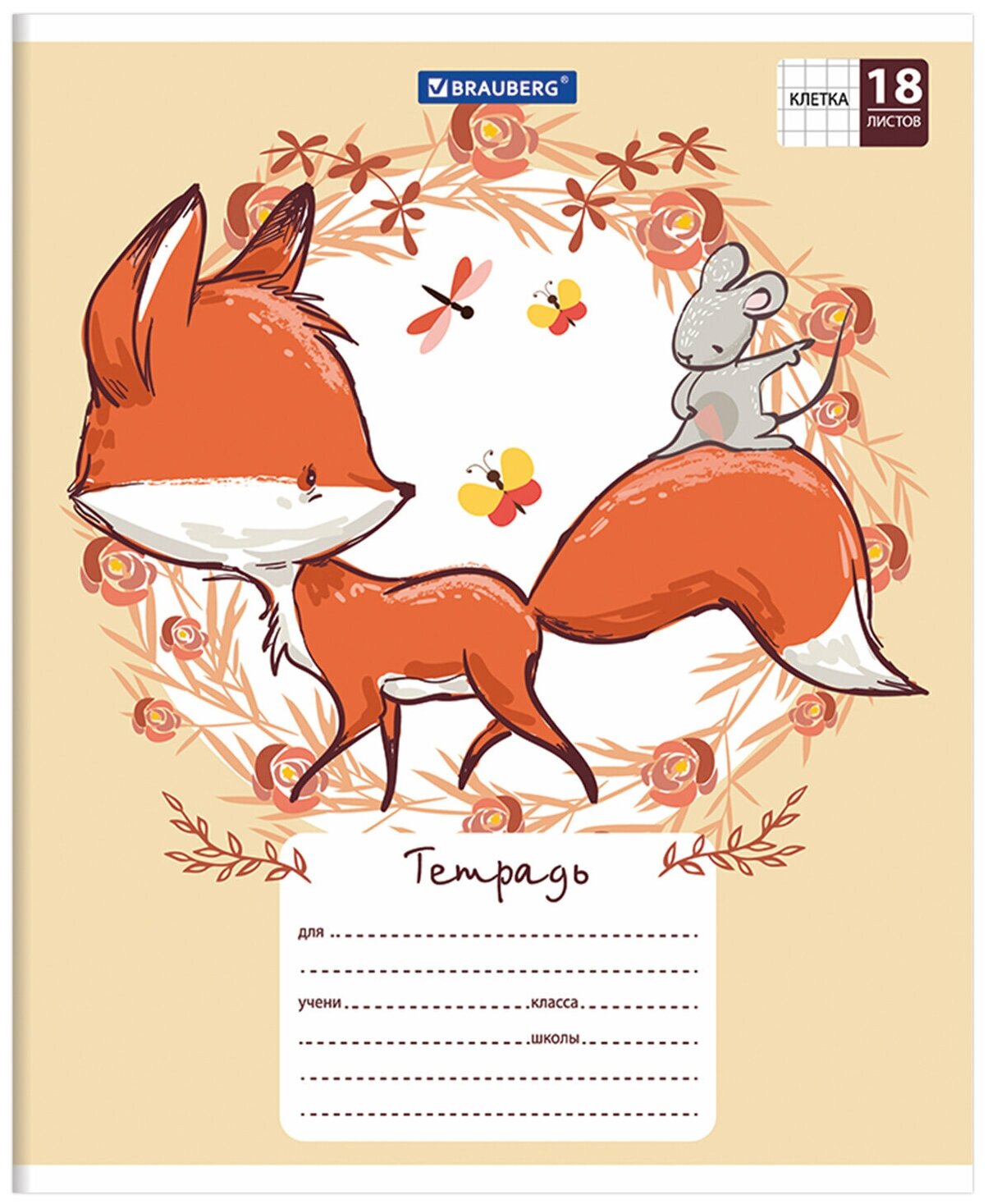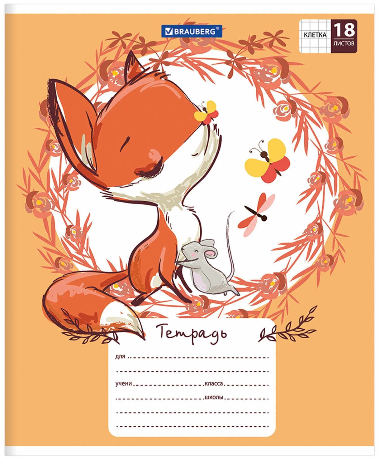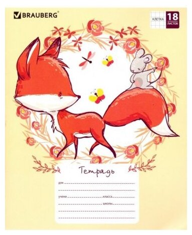 тетрадь 18л клетка А5 BRAUBERG Cute Fox в асс-те (402992)